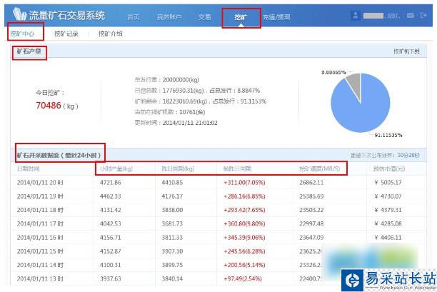 4、查看挖礦中心,礦石池開(kāi)采量