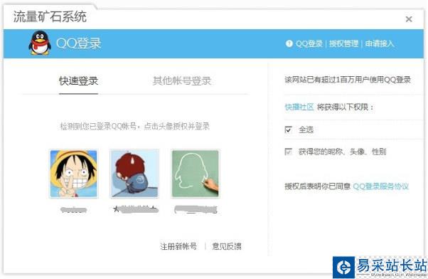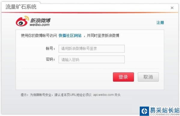 登錄流量礦石交易系統(tǒng),支持:(快播賬號(hào)、新浪微博賬號(hào)、QQ賬號(hào))