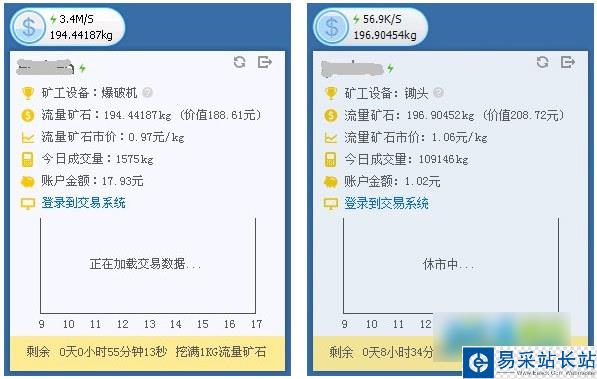 鼠標(biāo)懸停挖礦機(jī)表盤,會(huì)看到礦工設(shè)備/流量礦石/流量礦石市價(jià)/今日成交量等等信息。