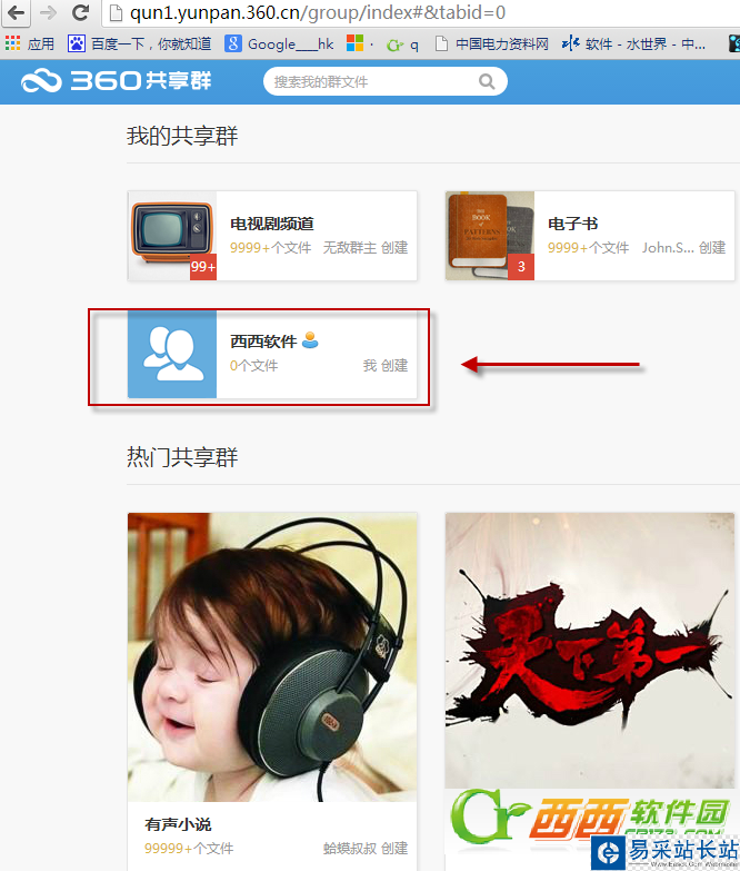 5、創建完成后,如下圖,可以看到"西西軟件"的共享群了。
