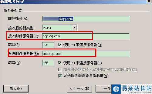 接收郵件服務器:pop.exmail.qq.com (端口 110),使用SSL,端口號995