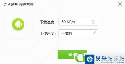 在限速管理中,可以對上傳速度和下載速速進行設置,設置完后點擊“保存”就可以生效了。