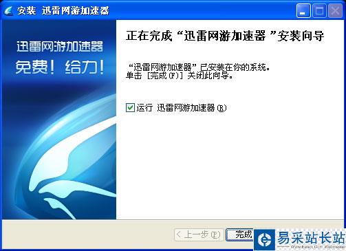 點擊“完成”,網(wǎng)游加速器安裝成功;如勾選了“運行”則會啟動網(wǎng)游加速器。