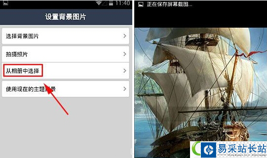 3)選擇背景圖片,可以選擇系統(tǒng)上的背景,也可以選擇手機上的背景,(以從相冊中選擇為例)選擇完畢之后點擊右下角的“發(fā)送”,就可以成功的設置好背景圖片了。