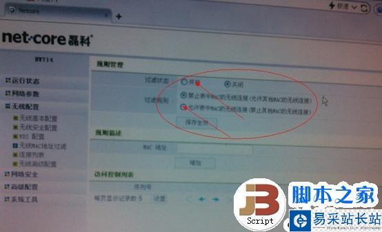 “過(guò)濾狀態(tài)”和“過(guò)濾規(guī)則”默認(rèn)是“關(guān)閉”和“禁止”的,把這兩個(gè)都改為“開(kāi)啟”和“允許”,這步非常重要,只有點(diǎn)擊“開(kāi)啟”和“允許”才能實(shí)現(xiàn)無(wú)線Mac地址的綁定。接下來(lái)