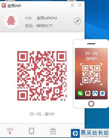 騰訊全民wifi其實也可以叫做騰訊隨身wifi、qqwifi,不僅可以將電腦一秒變成wifi熱點,而且還擁有游戲加速、游戲禮包等誘人功能,如果你想連接wifi,直接掃掃二維碼就能連接,對于廣大用戶來說,是絕對的福利啊!