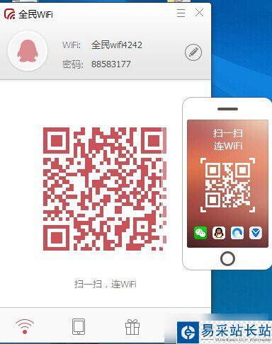 騰訊全民wifi其實也可以叫做騰訊隨身wifi、qqwifi,不僅可以將電腦一秒變成wifi熱點,而且還擁有游戲加速、游戲禮包等誘人功能,如果你想連接wifi,直接掃掃二維碼就能連接,對于廣大用戶來說,是絕對的福利啊!