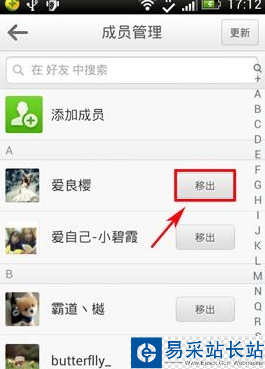 2、在進人成員管理界面,點擊“移出”按鍵,然后在顯示出的界面中按“確定”按鍵。