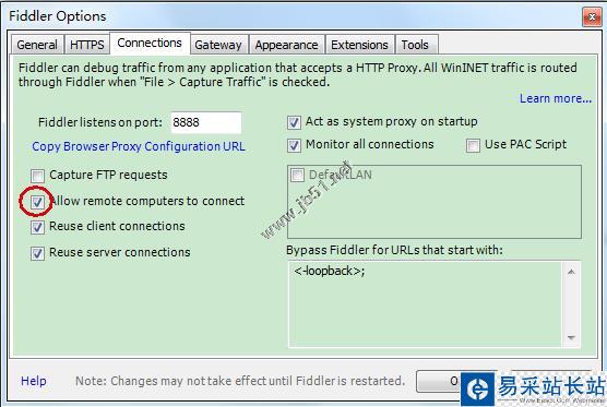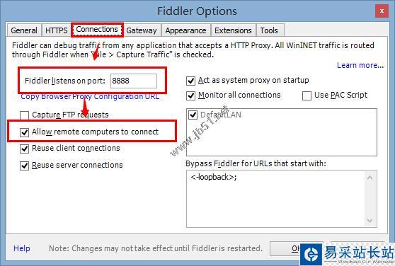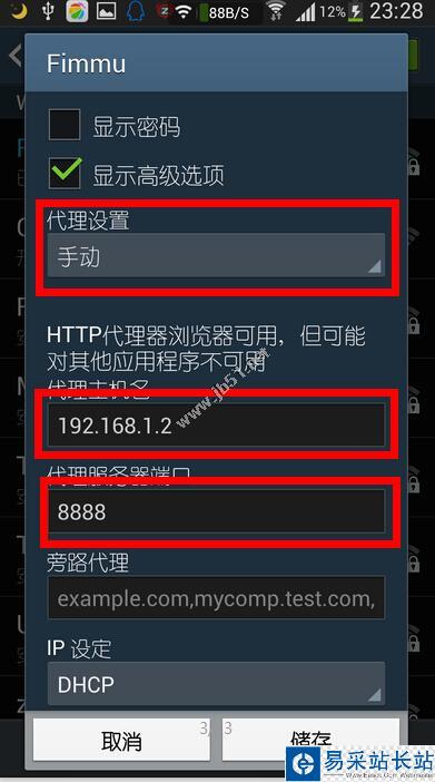 代理設置為:手動;代理主機名為你的電腦Ip,端口就是剛才Fiddler設置的端口。
