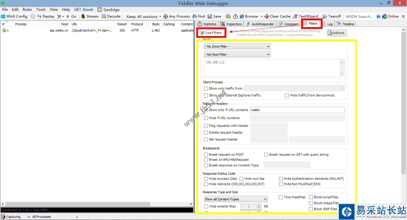 提示:Fiddler可以設置過濾,可以很方便看到我們想要的Http包: