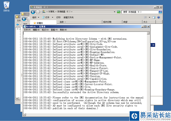 7.進行安裝SCCM前的域架構擴展(運行SCCM安裝光盤D:/SMSSETUP/BIN目錄下的Extadsch程序)