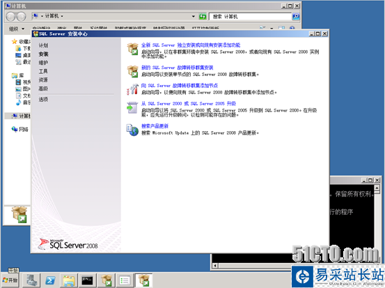 4、安裝好.NET Framework后繼續運行SQL安裝程序,選擇左邊目錄的安裝,然后選擇第一項:全新SQL Server 獨立安裝或向現有安裝添加組件