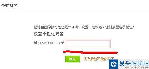 4、點擊以后,可以自定義自己的個性域名,如果與別人重復(fù)是不能夠確定的哦!而且只能修改一次!
