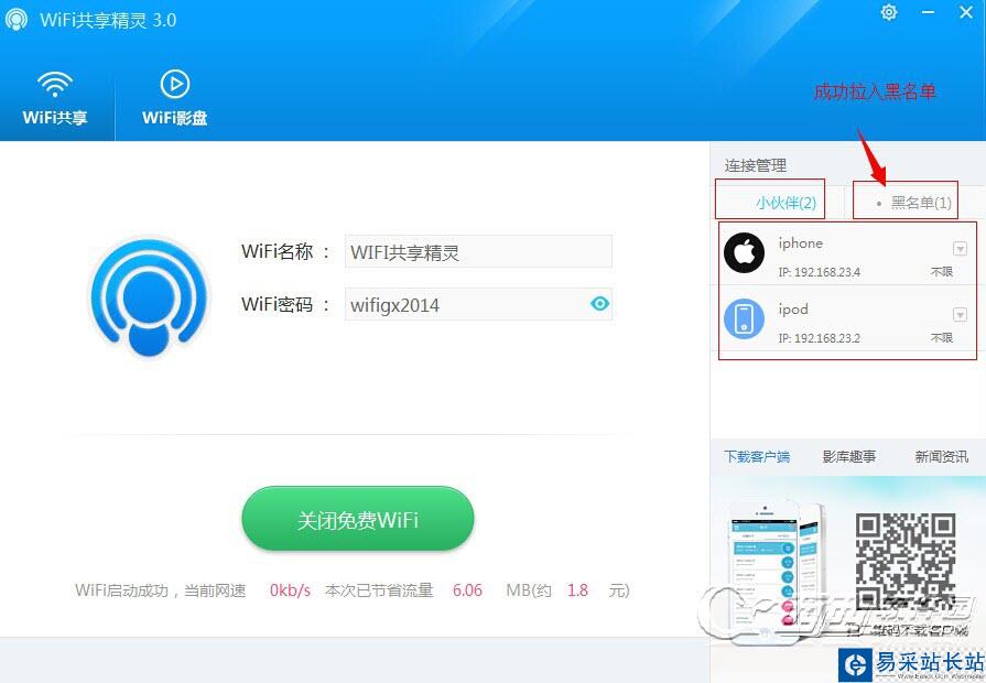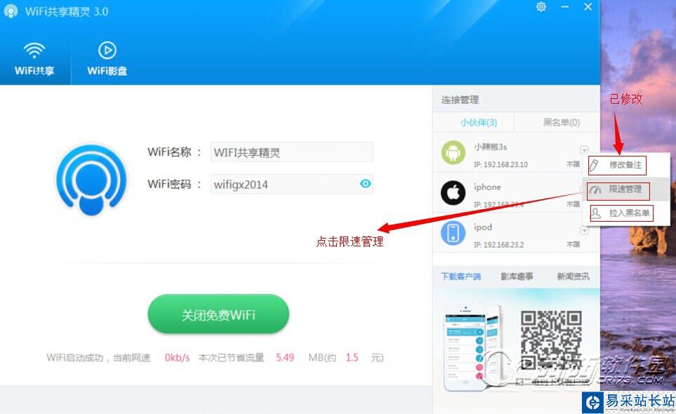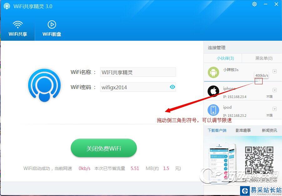 軟件名稱:WIFI共享精靈 v2014.06.09.001 正式版 (將筆記本變為無線熱點)軟件大?。?2.4MB更新時間:2014-06-16