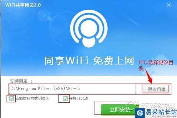 自定義安裝:可以選擇是否添加快捷方式到桌面還有開機自啟動,選擇好更改目錄后,立即安裝: