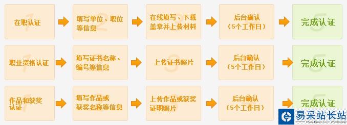 用戶可上傳在職證明、職業資格證書、作品和獲獎證明進行認證;