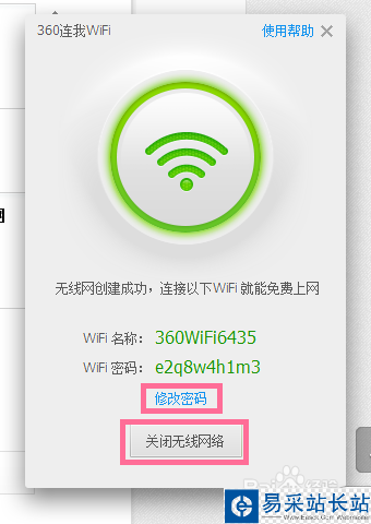 如果你覺得360連我wife提供的密碼太過復雜可以點擊《修改密碼》修改成自己熟悉的密碼。不想使用的時候點擊《關閉無線網絡》即可。