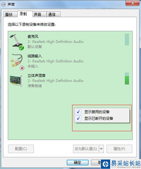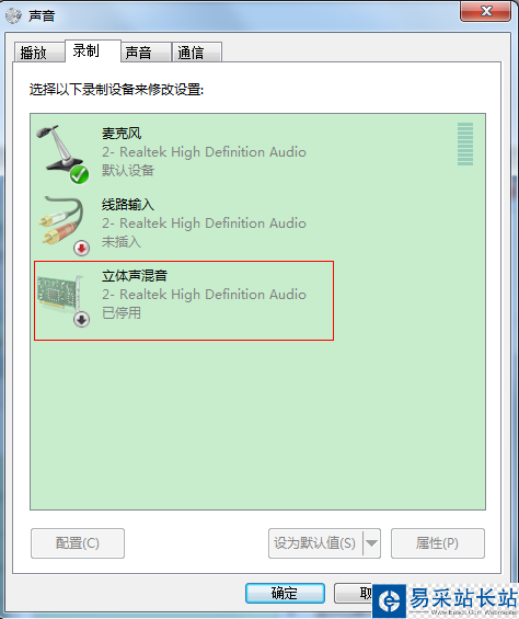 (1)語音模式。也就是普通說話模式。把“立體聲混音”設(shè)為停用,把“麥克風”設(shè)為啟用,默認設(shè)備。[如下圖]