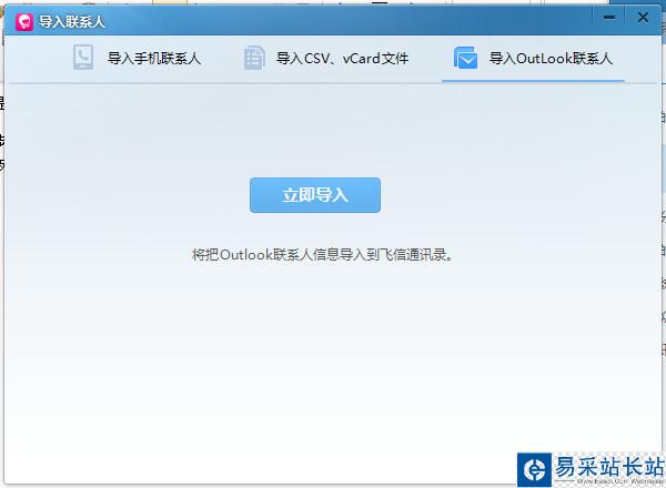 在飛信2014通訊錄的右邊有個導入按鈕,打開之后就可以看到聯系人導入向導,一共三種方式,大家可以按照向導提示進行操作!
