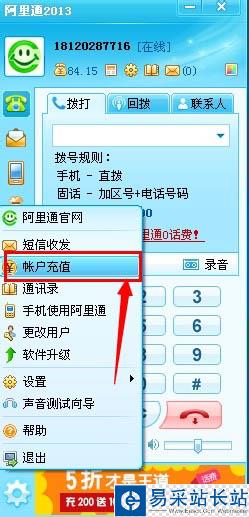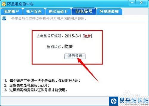 3、進入阿里通充值界面之后,點擊“去電顯號”按鈕