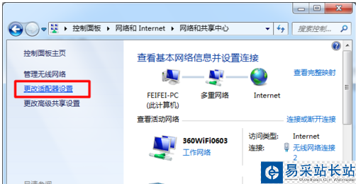 步驟二:接著點(diǎn)擊“更改適配器”設(shè)置選項(xiàng)。