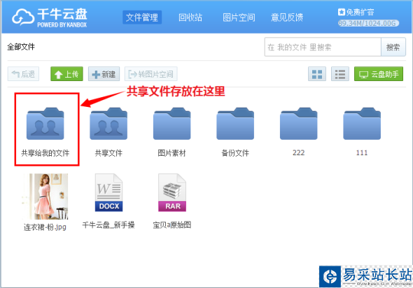 共享成功后,被共享者云盤中會出現“共享給我的文件”文件夾,里面存放了共享文件。