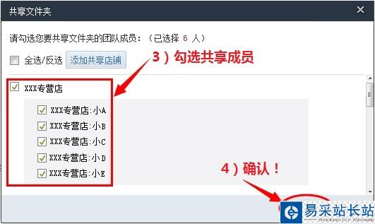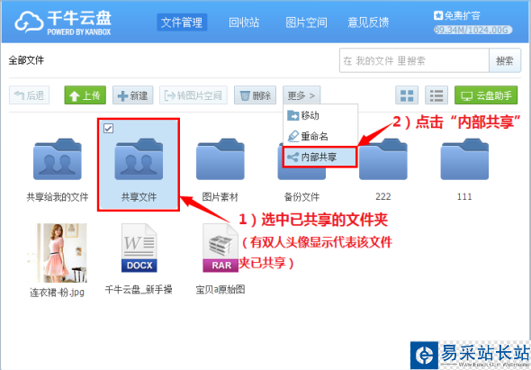 選中要共享的文件夾,點擊“內部共享”,勾選要共享的成員,確認即可。