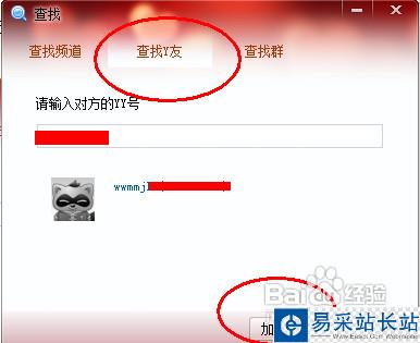 2、在查找Y友選項卡中輸入好友的賬號點擊查找按鈕即可進行查找,然后點擊加為好友按鈕