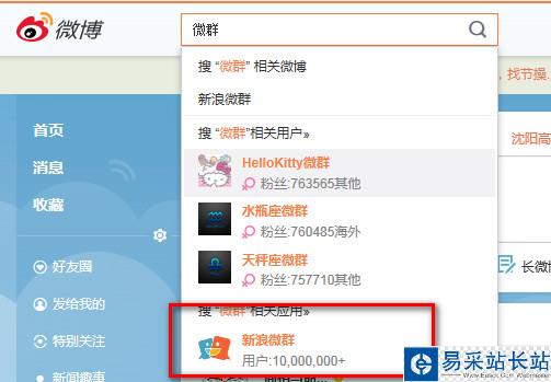 步驟二:進(jìn)入微博首頁(yè)之后,在搜索框中輸入微群二字,在最下方便出現(xiàn)了微群應(yīng)用。
