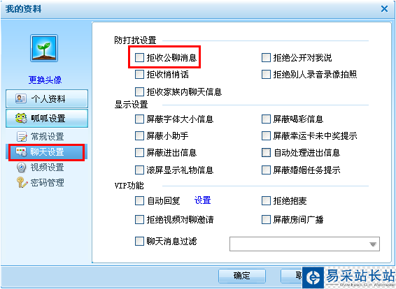 1、如何拒絕接收公聊信息