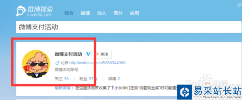 首先打開網頁版的新浪微博,在首頁的搜索框中輸入“微博支付活動”