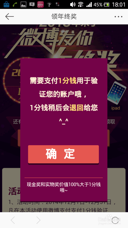 然后對著上面網頁中的二維碼進行掃碼。然后就會出現(xiàn)如圖的指示。點擊馬上領取。點確定