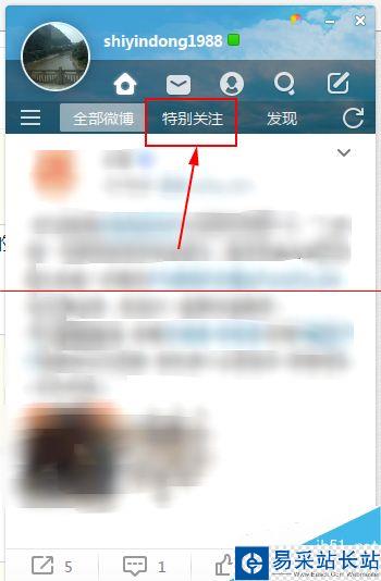 2、在微博桌面的主頁當中,默認顯示的是全部微博內容,我們點擊旁邊的“特別關注”選項就可以啦。