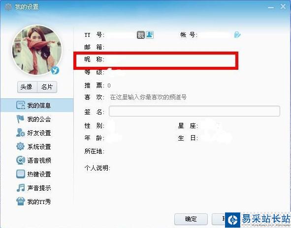 2、然后在彈出的對話框中點擊“我的設置”然后再昵稱的那欄更改自己的馬甲,單擊確定。