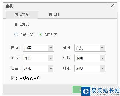 5、設置好查找條件點擊【查找】就會找到你想要的好友