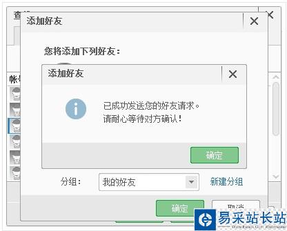 7、好友添加請求發送完畢,等待對方確認是否添加為好友!