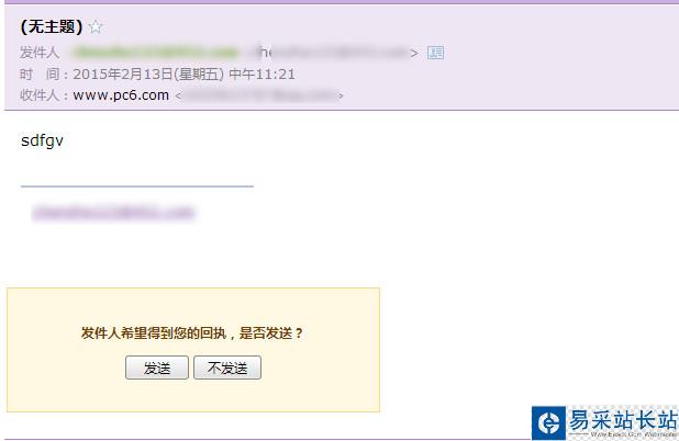 3、發(fā)送郵件之后,收到的郵件打開會有一個提示是不是要發(fā)送回執(zhí)