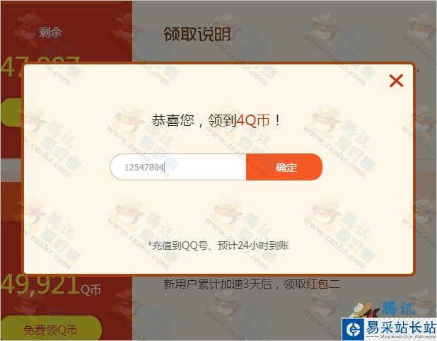 1.成功完成紅包右側任務即可點擊“免費領Q幣”獲得隨機值Q幣。成功領取Q幣后請填寫QQ號,我們將在24h內發放到您填寫的QQ賬號中;