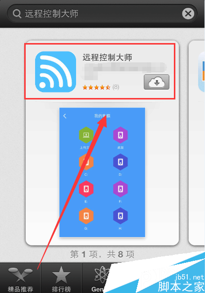 然后在手機上下載安裝【遠程控制大師】這款應用。如下圖所示。