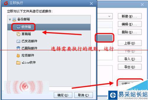 1、設置編輯好之后,需要先運行一下規則。點擊【立即執行】,找到應用規則的文件夾,一般是【收件箱】