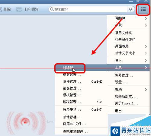 1、foxmail7.2為例,找到右上角選項---【過濾器】如圖