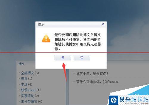 6、這時會彈出一個窗口,提示你需要徹底刪除博文嗎?這次刪除是徹底刪除,而且有關該篇博文的引用也會失效。