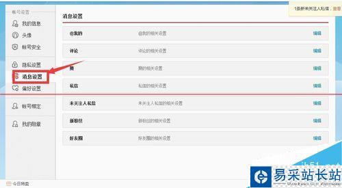 6、點擊消息設置