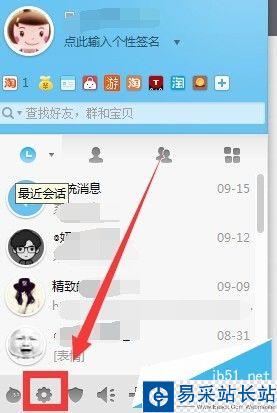3、進入旺旺的主頁面后,點擊左下角的齒輪設置按鈕。