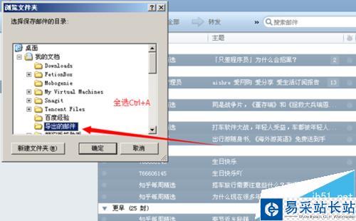 批量導(dǎo)出郵件(只需要按住鍵盤(pán)CTRL鍵加鼠標(biāo)點(diǎn)擊 如果全選,點(diǎn)擊ctrl+A)如下圖