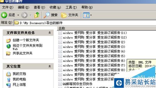 3、再次打開(kāi),找到剛剛選擇的導(dǎo)出郵件的文件夾目錄。即可找到導(dǎo)出的郵件,是以eml格式文件顯示的