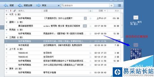1、其實(shí)導(dǎo)出郵件還有一個(gè)更簡(jiǎn)單的辦法,選擇需要導(dǎo)出的郵件,按住鼠標(biāo)拖動(dòng)出來(lái)即可