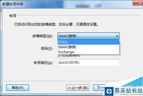 4、郵箱類型建議選擇為POP3,IMAP雖然能夠?qū)崟r推送郵件新消息,不過新手不小心刪除了本地郵件的話,連服務(wù)端的也會同步刪除的,POP3則可以設(shè)置不刪除。