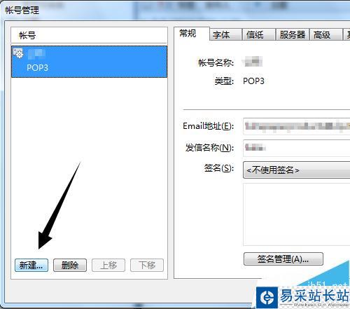 2、在賬號管理器的左邊,左下角的位置點擊【新增】一個郵箱賬戶。