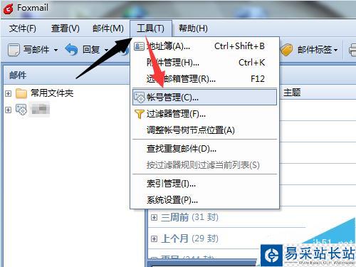1、運行Foxmail郵件接收客戶端,點擊菜單【工具】-【賬號管理】新增用戶。